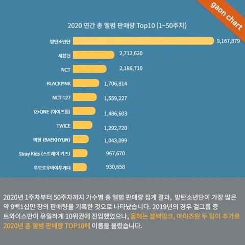 진짜 1년동안 거의 천만장 가까이 판거야...? 미쳤네 그냥 미쳤다 소리 밖에 안나와...세븐틴이랑 엔시티도 진짜 대단한데 방탄은 걍 어니더 클래스다..세계 1위 아냐?