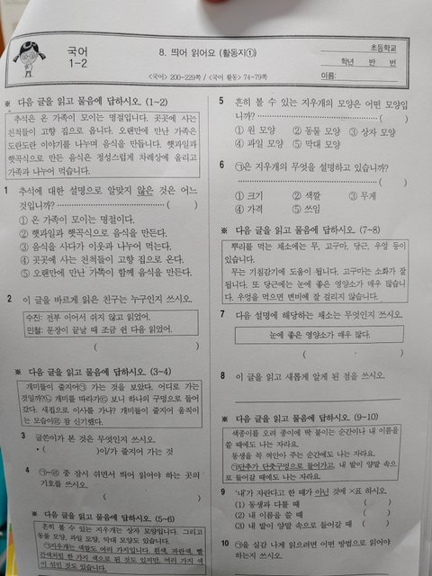초등학교 1학년은 글자 배우기도 벅찬데 대학 교수님들이 내는 수준의 문제 푸느라 힘들어요. 문학 전집 읽고 한참을 독학한 후에야 풀 수 있을 것 같은 문제. 엄마 아빠 없이 혼자서는 절대 풀지 못할 것 같은 문제.