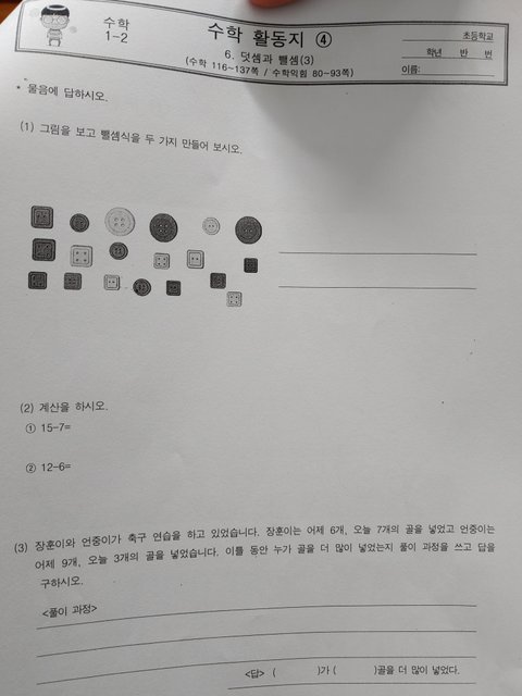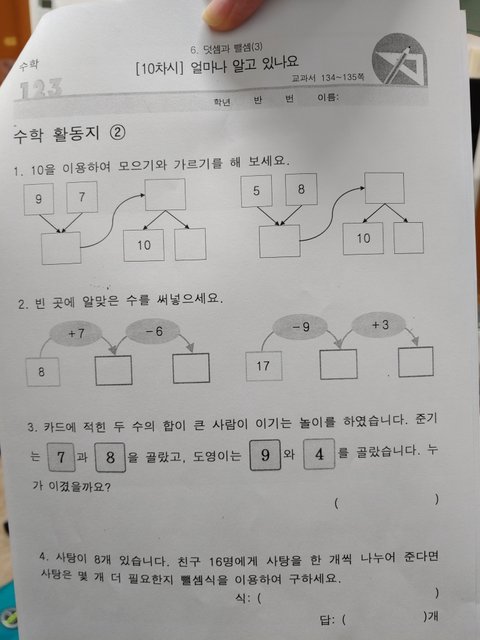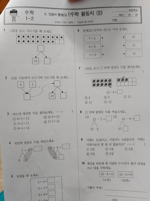 앗 이것이 초등학교 1학년 문제? 난 초6 문제인 줄 알았어...