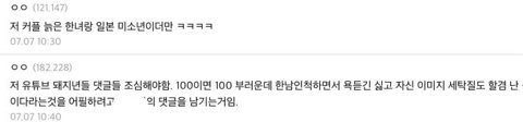 나만의 생각인지 모르겠는데 한일비교같은거 하면 묘하게 한국후려치는것같아ㅋㅋㅋ보통 한남일녀 커플이나 부부가 한녀일남커플보다 많은데 여자쪽에서 뭔가 한국에서 이런적도 있었지~ 하고 스을쩍 안좋았던거 얘기하면 남자는 그걸 일반화하면서 한국은 그렇네~ 이런식으로 얘기해ㅋㅋㅋㅋ꽤 자주 이런패턴의 비교를 보게됨 그래서 은근히 기분나쁘고 댓글도 맨날 일본여자랑 결혼해서 다행이다 한녀같았으면 뭐 어쩌구 이런거 꼭 있음 지랑 결혼한 여자보고 스시녀 이러는것도 정상은 아니다싶더라 그 유명한 ㅌㅁㅌㅁ 한녀일남 커플에서는 한남들 악플 장난아님