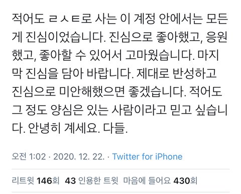ㅇㅇ 마즘.. 저분도 저러시는데 입덕한지 1년 2년된 애들이 정일훈 ㅈㄴ 싸고돌아.. 쉴드 오짐