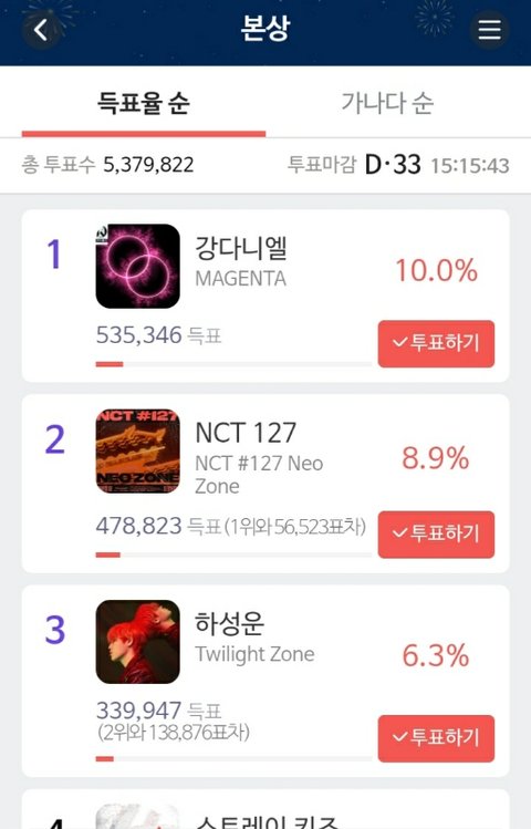 시즈니들 본상 1위할수 있도록 투표 꼭!!!