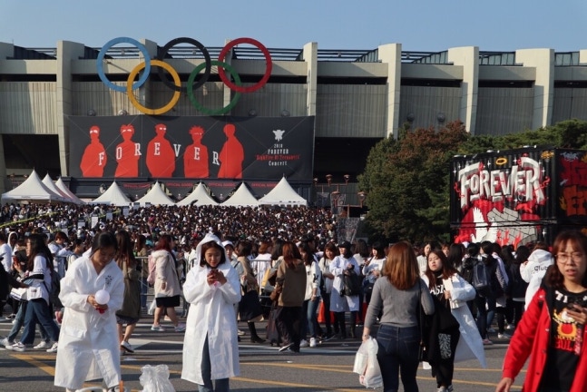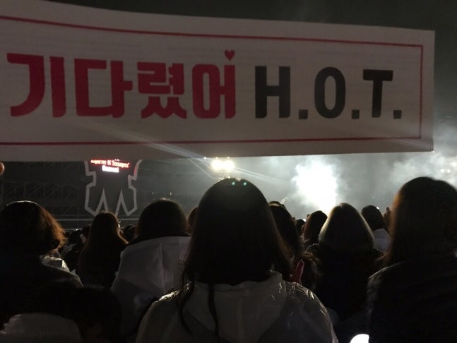 2018년 에이치오티의 17년 만의 재결성 콘서트 현장. 당시 8만장의 티켓이 단숨에 매진되고 220만원 넘는 암표가 등장하는 등 기록적인 인기를 보여줬다. 누가 아이돌그룹은 수명이 짧다고 했는가? 김미나 기자가 찍었다.