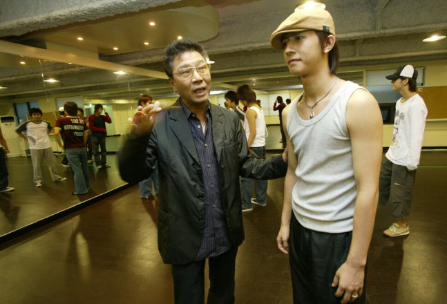 데뷔 준비 중인 가수지망생들의 연습을 지도하고 있는 이수만. 이수만은 지금도 에스엠 아티스트들의 음악에 꼼꼼하게 관여하는 것으로 알려져 있다. 김진수 기자가 찍었다.