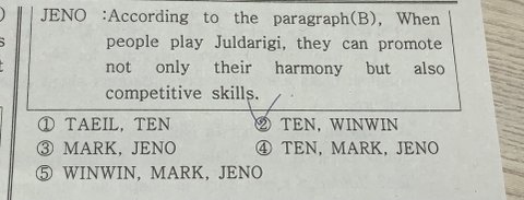 영어 시험에 강림해준 엔시티 멤버들 .. 덕분에 정신차렸다 이거 틀리면 난 시즈니 자격이 없어 하면서 풀었음 우리 엔시티는 시즈니 시험도 도와준다구욧