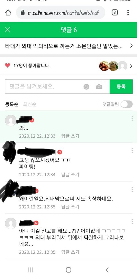 단지'와...'라고 댓글을 달았다가 삭제된 학우분