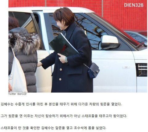 여자 스탭들 먼저 타라고 뒷자석 문 열어주는 김혜수
