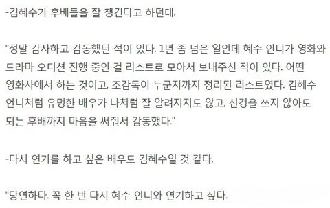 이번 드라마(하이에나) 스탭들이 김혜수를 진심으로 존경했다.