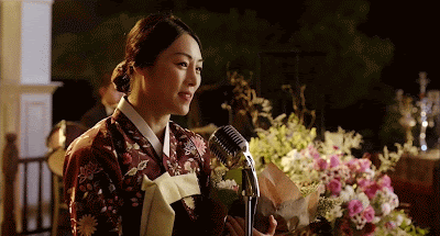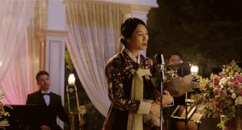 사람들의 박수갈채에 떠밀려 무대에 올라서는 연희
