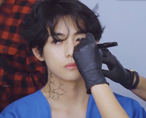 방탄 뷔 온활동때 목에 타투했었는데 그거ㅠㅠㅠㅜㅜㅜㅜㅜㅜㅜㅜㅜㅜㅜㅜㅠㅠㅠ 눈화장은 안한것가틍ㄴ데 먼가 말간얼굴에 저러니까 진짜 개좋다..