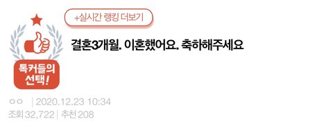 내가 행복하려고 한 결혼이고, 내 행복이 가장 우선인데 내 자신이 불행해서 이혼을 결심했음.