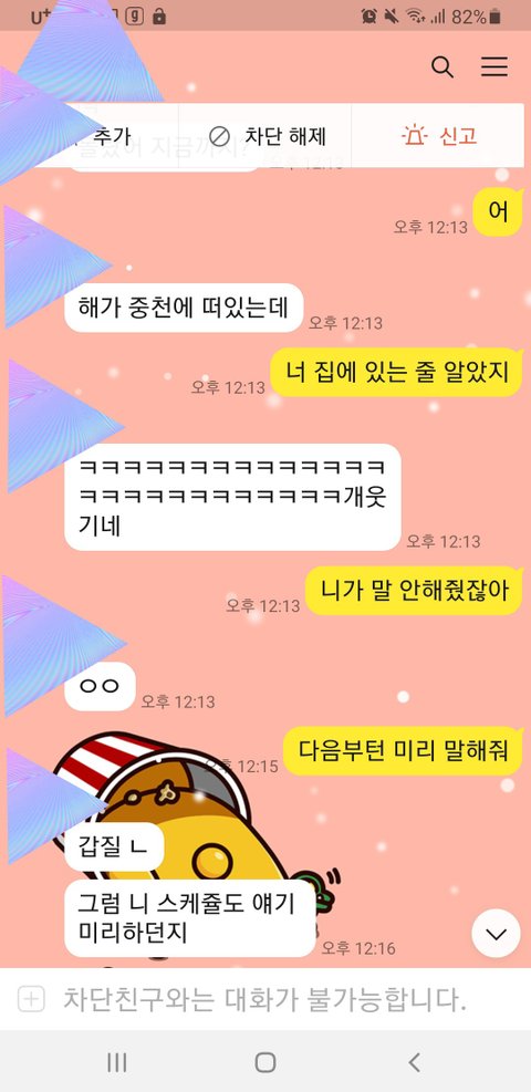 그걸 나중에 알게 돼서 미리 말해달라 말했더니
