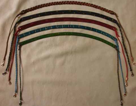 가죽에 천연염색하여 제작한 마스크 스트랩입니다.(마디샤 가죽공예)
