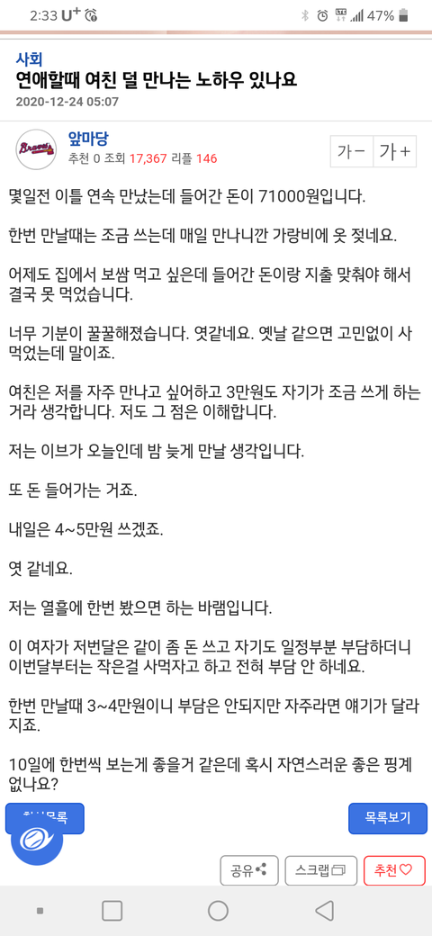 만나는 여자랑 잠자리는 하고픈데 돈아까워서