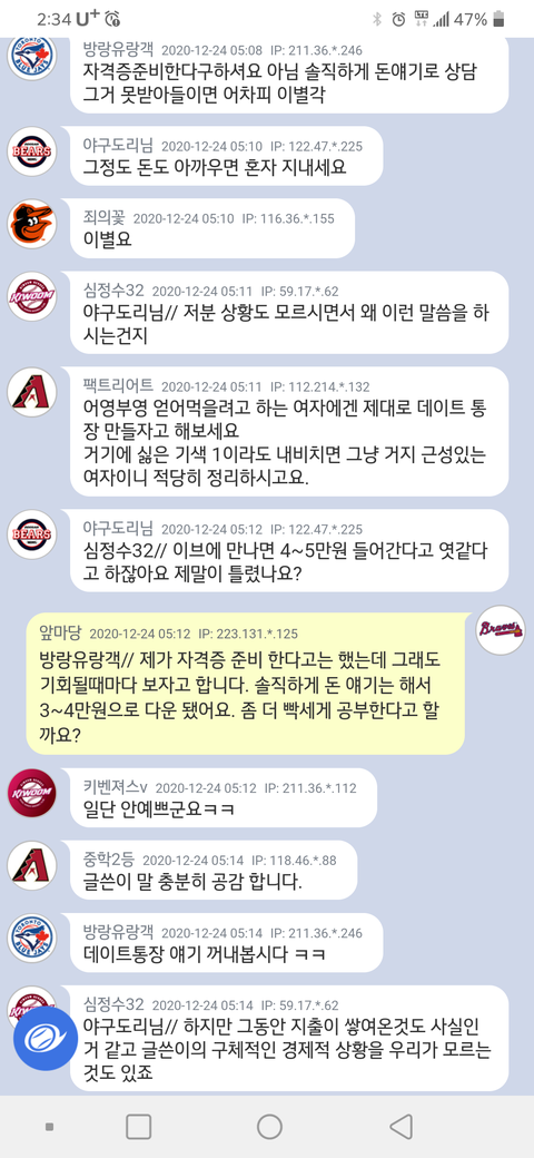 텀두고 만나고 "돈도 몸도" 바라는 놈 만나지 말고~~~
