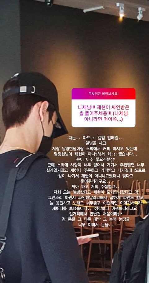 싸인해주느라 커피쏟을뻔했대 ㅠ 전에 디어엠목격담 생각나네