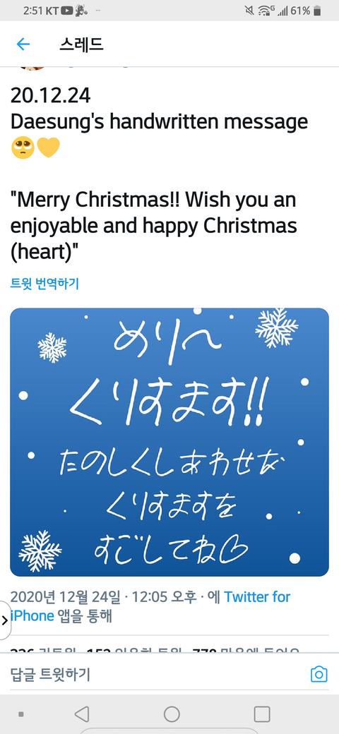 그래도 생존소식 올려줘서 고마워ㅠㅠ 즐거운 크리스마스 보냈으면 좋겠당♡♡♡