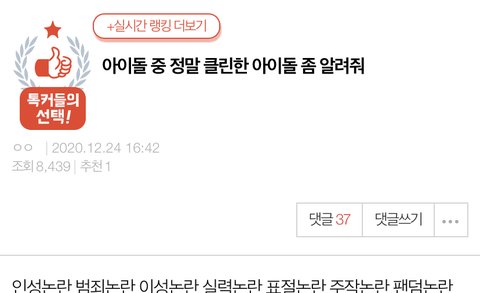 몇몇 애들이 여기다 툽 썻던데 아오 제발 그러지좀마 왜 그럴수록 욕 먹는걸 모르지..? 걍 먹금 좀 해주라