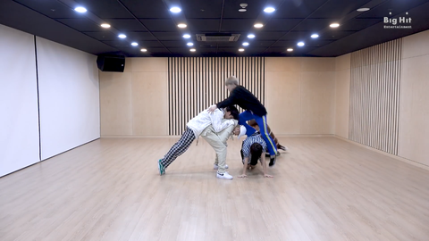연속 3개 짤은 Cat & Dog 안무 “무지개다리 건널 때까지” 라는 가사에 있는 안무인데 가사에 조카 충실한 안무 ; 연준이가 태현이 밟고 올라가서 범규랑 휴닝이 타고 내려가는 안무 조카 미침