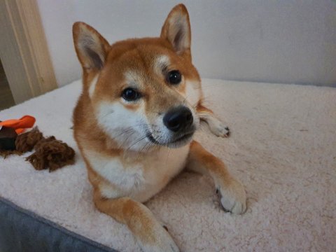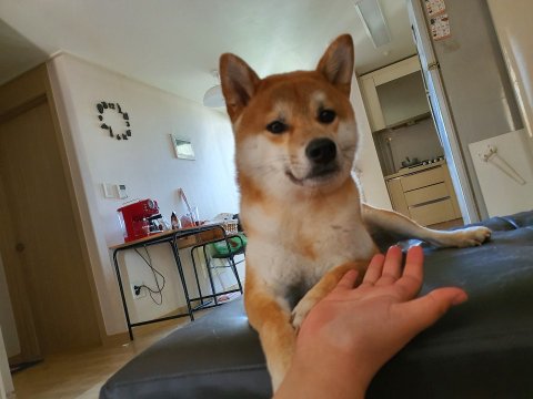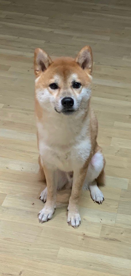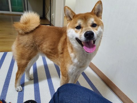 해맑은 표정과 꼬리가 잘 말려있고 귀가 쫑긋하면서 예쁘게 생겼습니다.