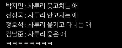 이제 방탄에 사투리 안쓰는애가 없음..ㅋㅋㅋ 김석진 충청/ 민윤기 김태형 전정국 박지민 경상 /정호석 전라/ 김남준 남투리