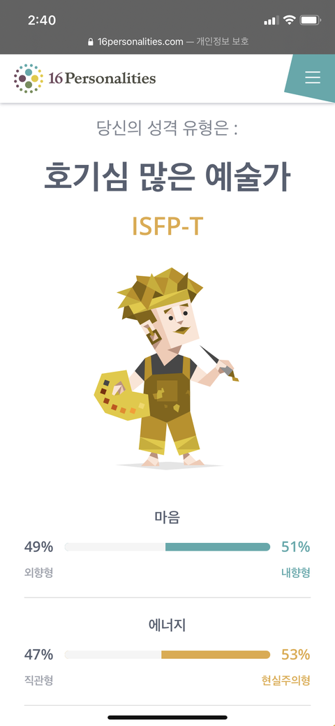 이런식으로 거의 반반임... 한 두번쯤은 인프피 나오다가 이번엔 잇프피 나옴