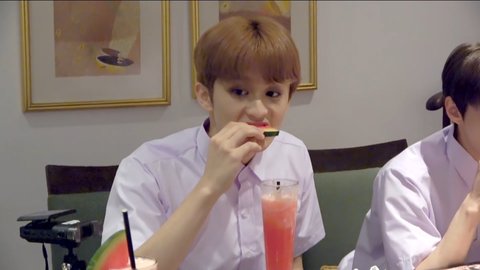 수박을 먹으면서 또다른 수박을 노리는 마크
