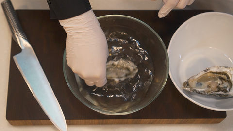 먼저 사온 하프셀 석화는 소금물에 씻어줍니다