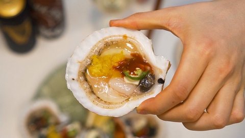 가리비는 굴과는 조금 다르게 오돌오돌 씹는