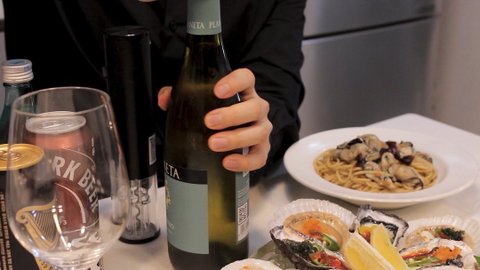 연말 홈파티라서 화이트와인과 맥주, 소주