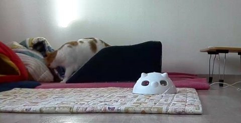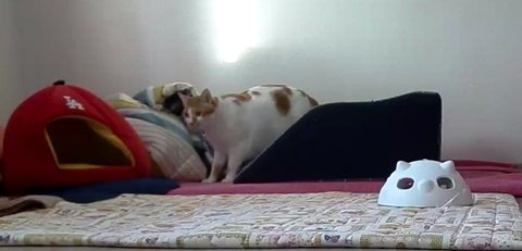 이불속으로 들어가기 위해 이불주변을 만지작 거리고 있음.