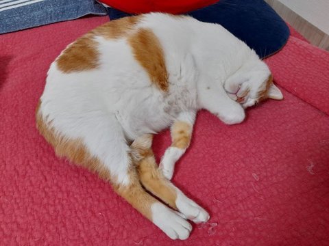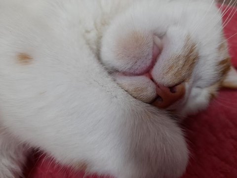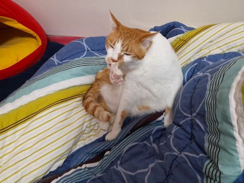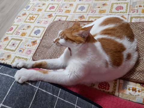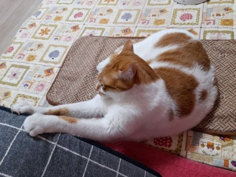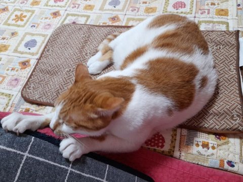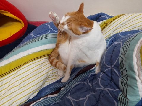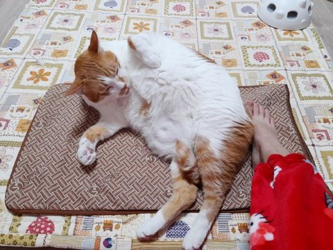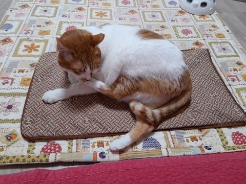 따뜻한 곳에 몸을 눕히고 발톱 정리도 하고 있음.