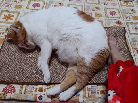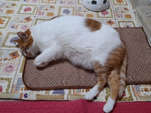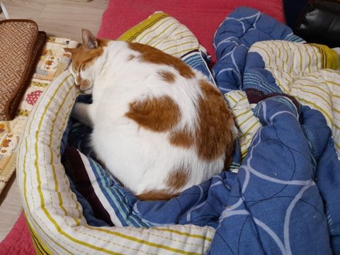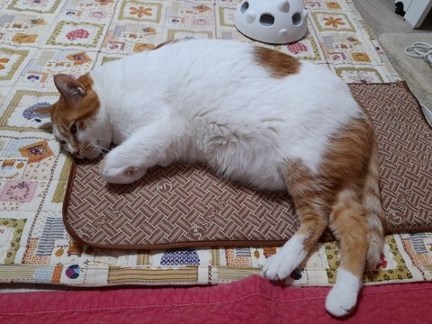 집사 이불 덮지 말라고 이불위에서 자더니 일어나지 않음.