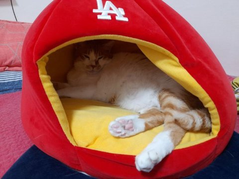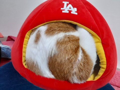 구지 저 안에서 다리 올리면서 그루밍하고 있음.