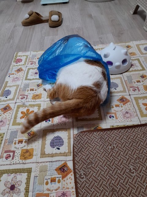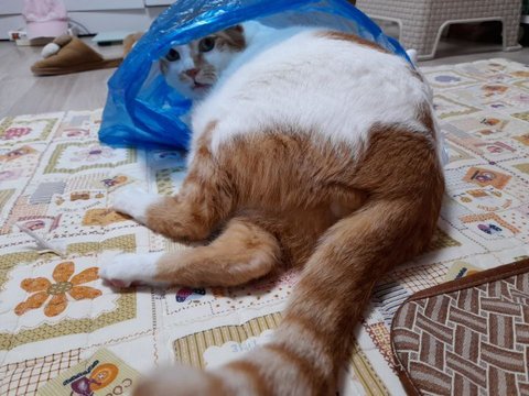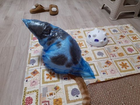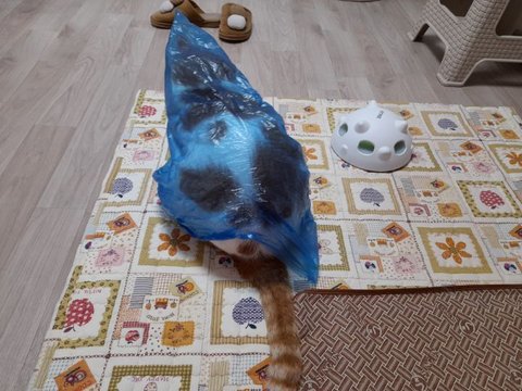 비닐봉지속이 얼마나 좋은지 만지지 말라고 집사한테 화내고 있음.