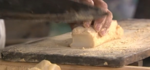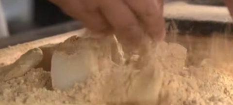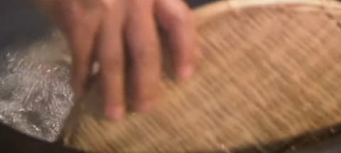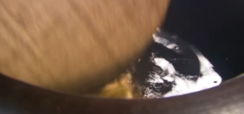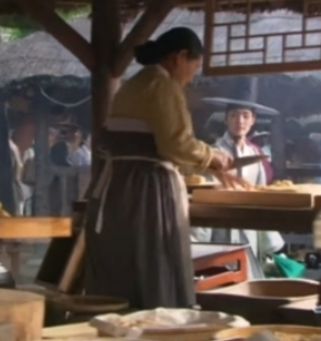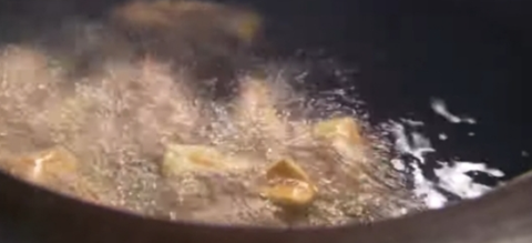 쿨하게 아까 그 소쿠리로 튀김 뒤집는 주인