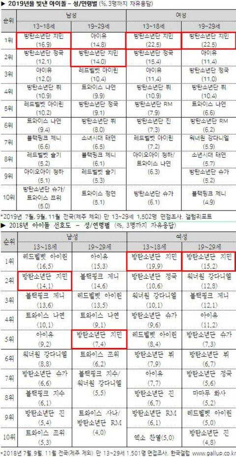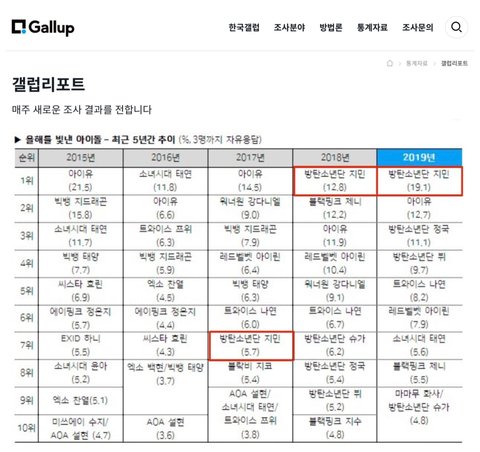 올해부터 '아이돌 개인 선호도' 조사는 폐지된다. 따라서 지민은 K팝에 다시 없을 한국갤럽 2년 연속 1위 대역사의 주인공이 된 것이다.