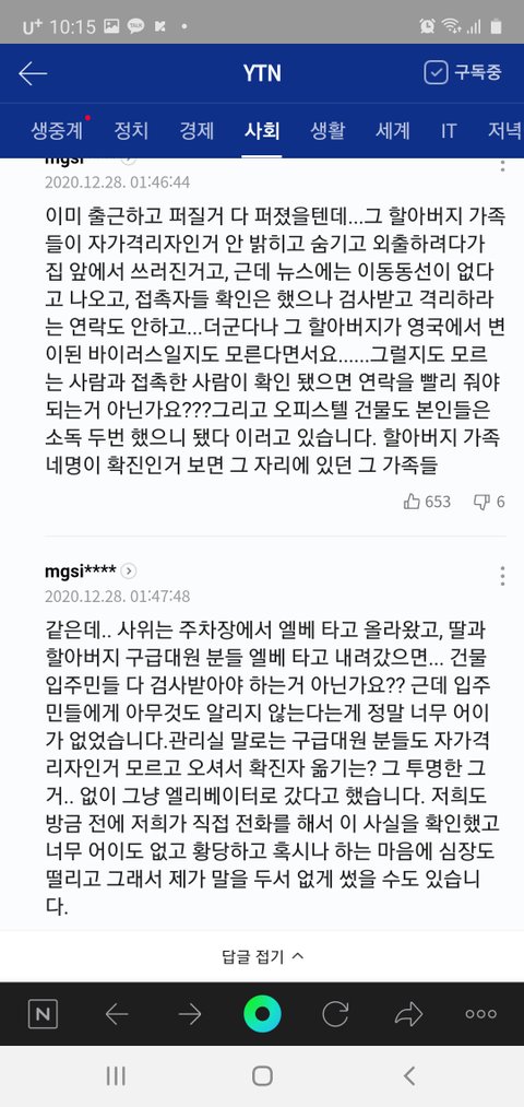 영국에서 귀국한 일가족확진 댓글 놀람주의
