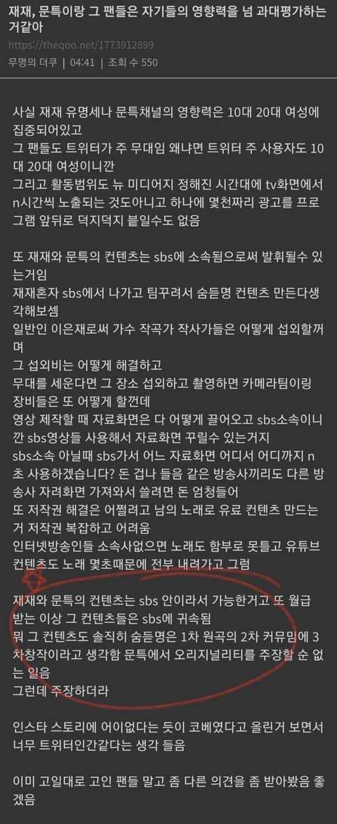 이번엔 좀 과했다고 생각함 근데 스브스 재재한테 페이 지급 제대로 해야됨 연반인이면 최소 연예인 반만큼이라도 주던지 월급만 떠올리면 ㅈㄴ일할 맛 안날 거 같음 재재 대체불가인 거 다들 인정할 걸 이번엔 좀 과했지만 담부터 좀 조심하면 되는 거고 재재 응원함