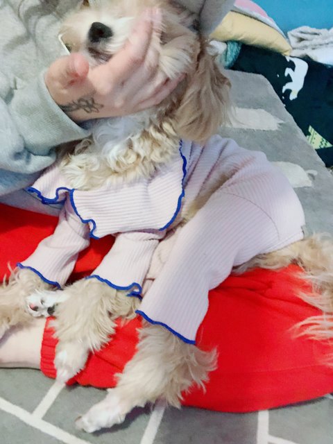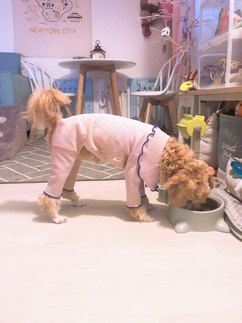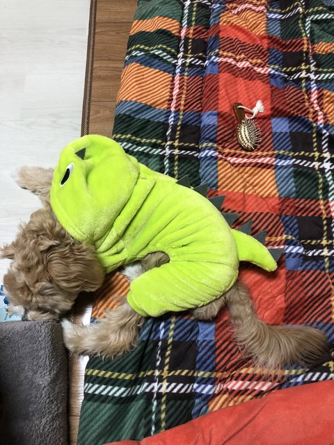 한창 이갈이중인 XL 댕댕이랑 집에서 놀기 (공룡옷이 크게나온거같아서 M 사봤는데 ..미안해 까루야..)