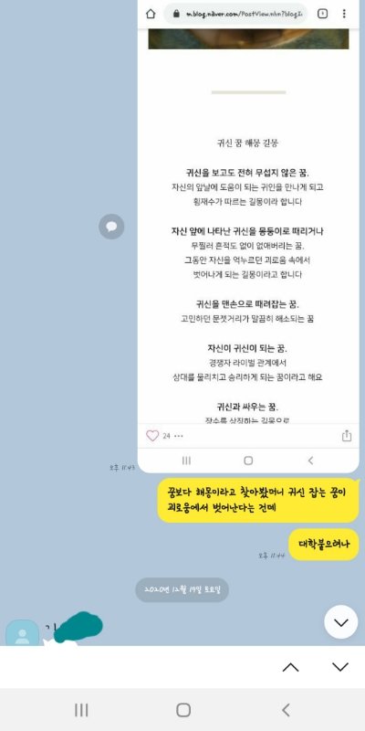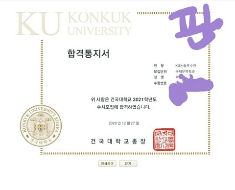 그래서 해몽이나 꿈이 이렇게 들어맞는 건가, 신기해서 글 올려봐. 처음이니까 날선댓글은 지양해주고, 이건 그때 내 카톡 내역이랑 건대 합격증이야. 안 믿을까봐 한 번 올려 사실 합격증은 좀 멋있어서...