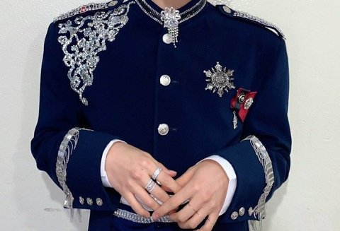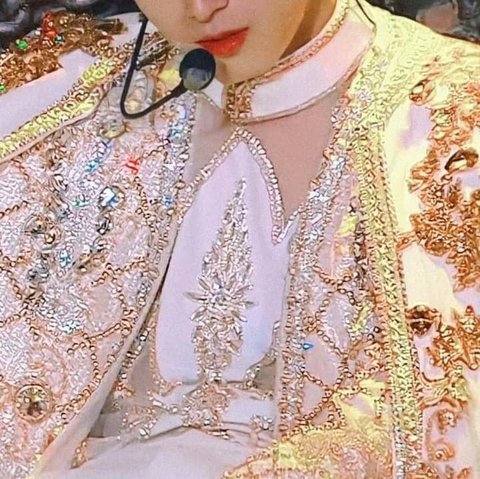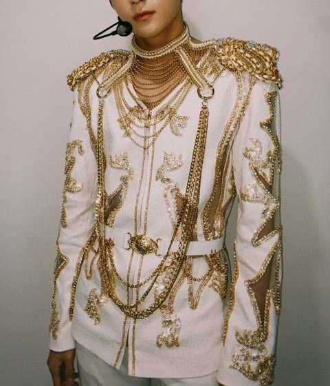 화이트 바지에 골드 상의, 골드 장식 = 존좋