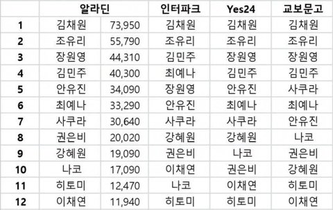 아이즈원 트와이스 엔시티 인기순