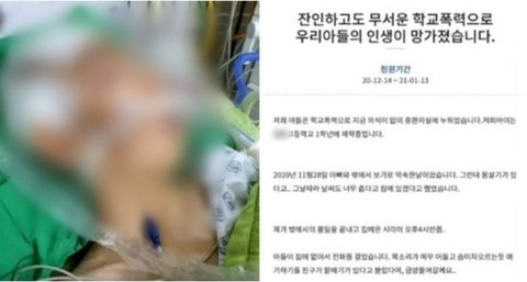 A 군 어머니는 청와대 국민청원 게시판에 가해 학생들의 강력한 처벌을 요구하는 글을 올렸습니다.