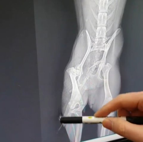그래서 동물병원에 갔는데 교통사고로 다리가 3곳이나 골절된 상태였던거야