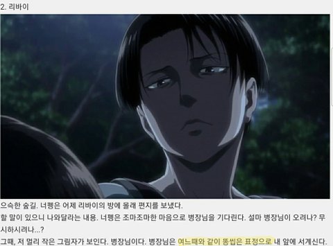 리바이 묘사한거 ㅈㄴ ㅋㅋㅋㅋ여느때와 같이 똥씹은 표정ㅋㅋㅋㅋ