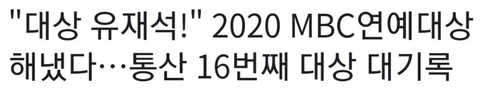 이로써 유재석은 통산 16번의 대상의 영예를 안았다.