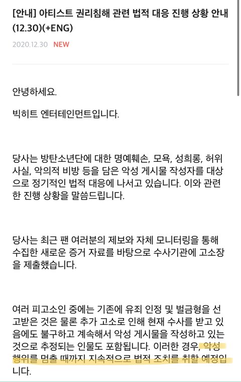 ❤️빅히트 고소공지(1230ver)❤️