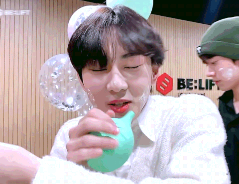 정원이 볼이 있던 생크림 풍선바람때문에 희승이 옷에 붙은거