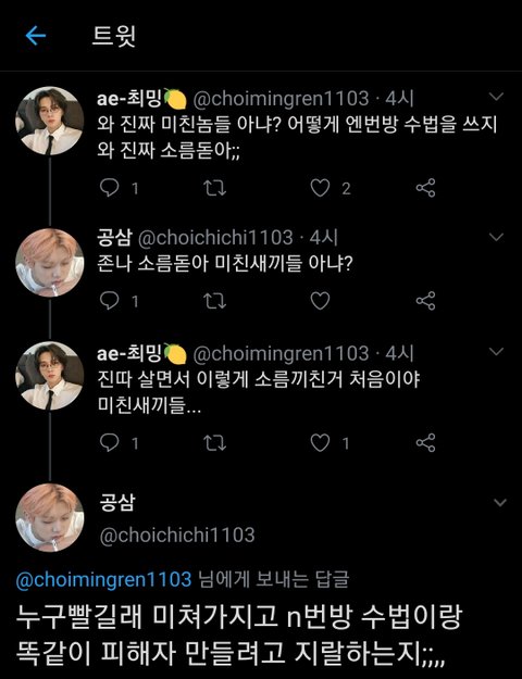본문 남자 아이돌 빨면서 n번방 언급하는게 주옥같다는게 뭔말이야? 남자 아이돌 팬이랑 n번방이 무슨 연관 있는 것도 아니고, 남자 아이돌을 빨아서 비판 한다는게 조금 이해가 안가네?? 남자 아이돌 빠는 애들이면 대부분 여자일텐데 저 사건이나 수법의 문제를 더 공감하고 위험하다 여기고 있지 않을까? 남자 아이돌 빨면 성이슈 언급도 못함? 그 사건이랑 피해자분들 비꼬거나 조롱한 것도 아니고 트위터에서 저런식의 링크로 정보 빼내는거 위험하다는 거 아냐?